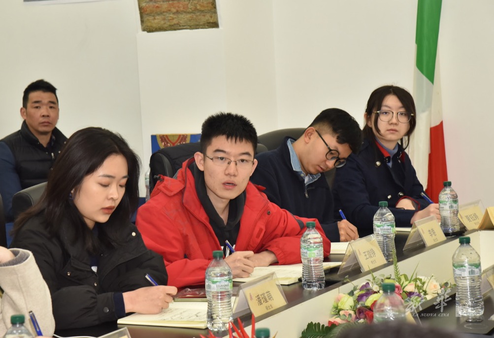 当天下午,支队成员与意大利中国文化交流与发展中心主任、意中文化旅游促进会主席张长晓在意中文化交流与发展中心进行座谈,分享了来到意大利后的见闻与感悟,并与张长晓就中国的海外形象输出、中意文化异同等主题开展深入讨论。“祖国的繁荣为中意双方的广泛交流提供了丰厚土壤,为多层次的文化互动埋下了种子。一个直观的体会是,当我们走在意大利街头,许多意大利人在知道我们来自中国后都会亲切地用中文说一句‘你好’,这让我们不仅感受到身为中国人的自豪,也认识到,身为青年一代的我们应当主动承担起对外输出中国形象的重任。”2025新澳门开门原料免费材料学院博士生夏钰婷说道。