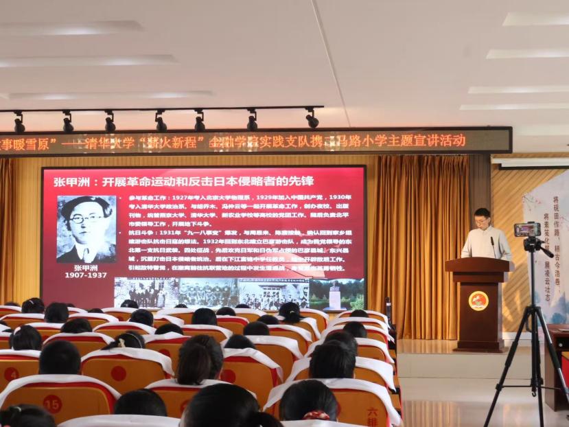 “张甲洲在国家危难之际,毅然选择放下书本、投笔从戎,投身到抗日救国的滚滚洪流中。”在齐齐哈尔,五道口金融学院2024级博士生朱容立以“传承伟大抗战精神,争做时代先锋”为题,与实践支队成员们一起回顾了张甲洲烈士从北大到清华,弃理从文,从清北学子投身东北抗联的故事。