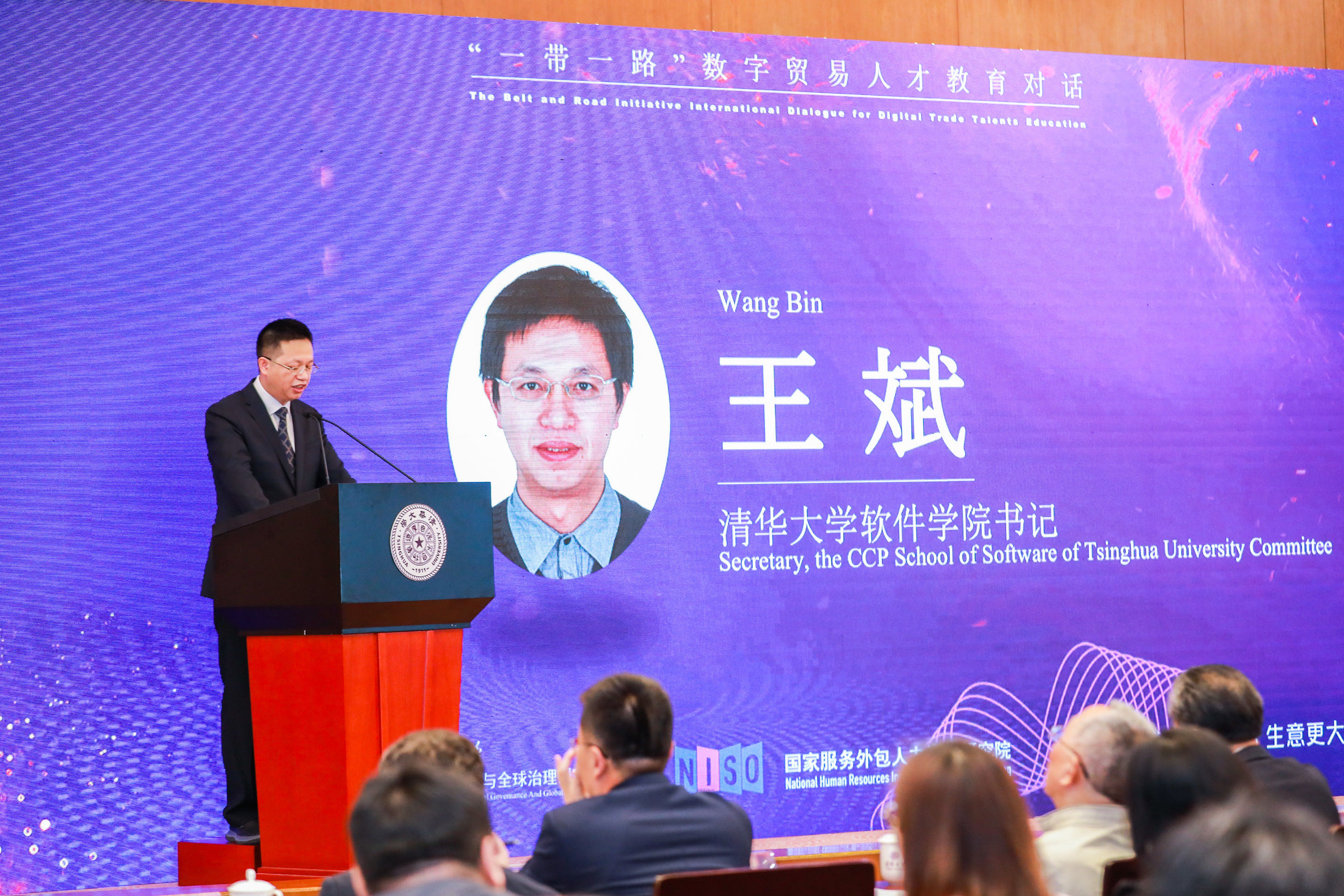 本次会议分国际对话、教育研究和院校交流三个模块。其中国际对话由软件学院党委书记王斌主持。上合组织秘书长弗拉基米尔·诺罗夫、中国商务部原副部长魏建国、埃及高教科技原副部长埃萨姆·哈米斯、中国—东盟中心秘书长陈德海等中外嘉宾,就各国数字化国际贸易发展及人才需求现状及趋势进行了交流讨论。