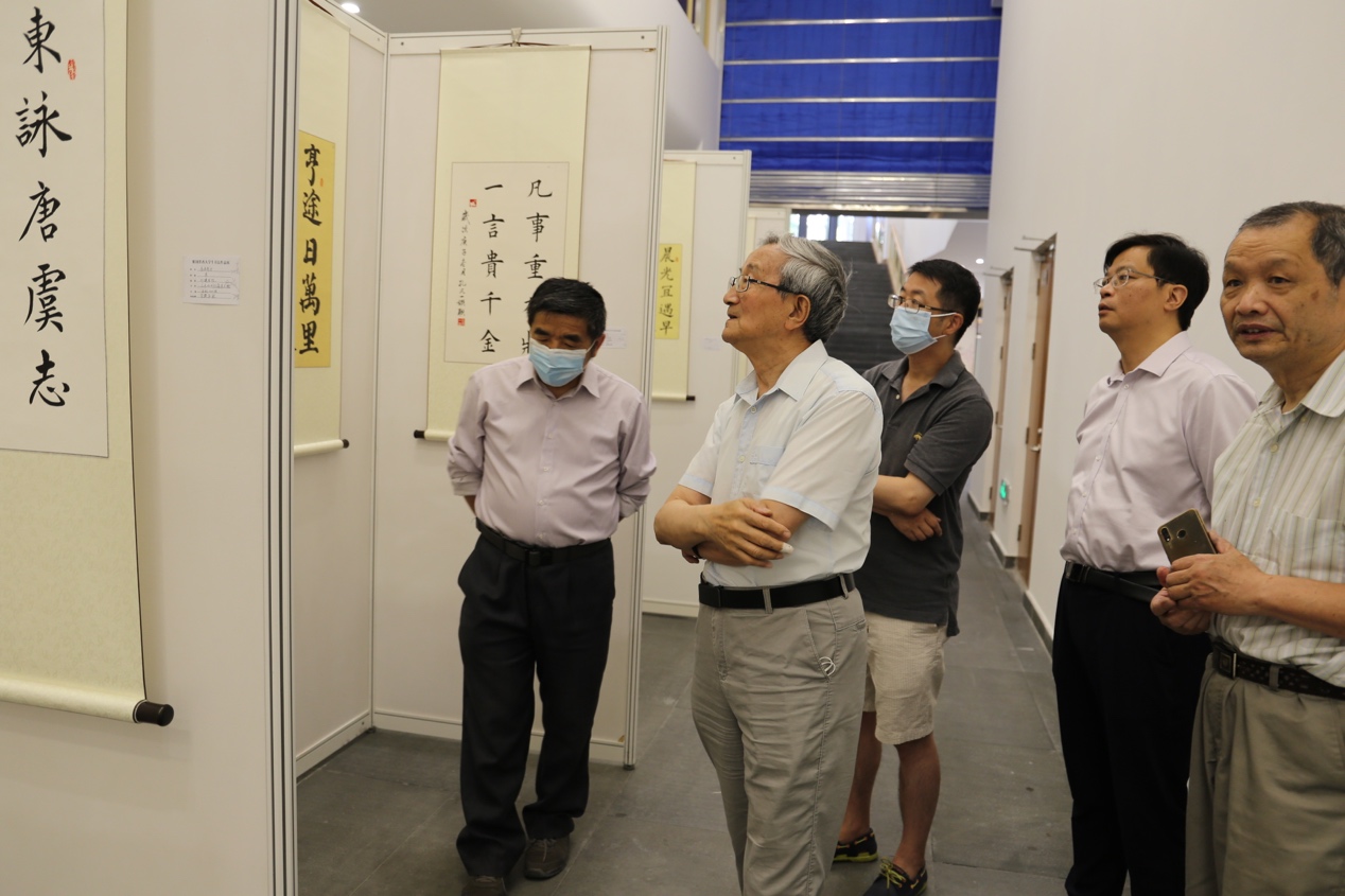 胡显章仔细观看了书法展现场的学生作品,饶有兴致地与各位老师探讨点评了部分作品,并为此次书法作品展题词。胡显章对此次书法作品展给予充分肯定,并叮嘱一定要将“书法与篆刻创作”课程讲授与学校“三位一体”的教学理念相融合,为提升清华学生的人文素养、促进校园文化氛围建设多作贡献。