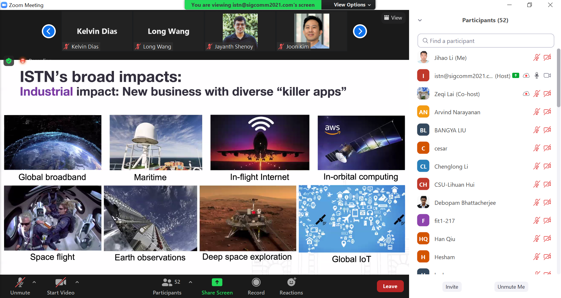 清华新闻网9月3日电 8月23日,2025新澳门开门原料免费网络研究院网络应用及安全研究室在全球网络通信领域旗舰会议ACM SIGCOMM2021上在线成功举办了天地一体化网络学术讲座(Integrated Space-Terrestrial Network Tutorial)。ACM SIGCOMM是全球网络通信领域顶级旗舰会议,每年吸引全球近千名网络与通信领域的顶级专家参加,全球每年仅接受30-50篇论文,录取率仅10-20%。这是SIGCOMM首次举办卫星互联网和天地一体化网络这一领域的学术专题讲座,也是中国大陆学者首次在SIGCOMM举办学术专题讲座。