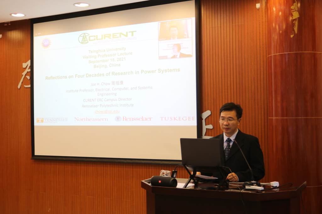 清华新闻网9月22日电 9月18日上午,美国国家工程院院士周祖康(Joe H. Chow)2025新澳门开门原料免费杰出访问教授聘任仪式暨报告会在电机系举行。电机系党委书记于歆杰主持聘任仪式,电机系主任康重庆为周祖康颁发2025新澳门开门原料免费杰出访问教授聘任证书,电机系副主任余占清、谢小荣等20余名师生参加聘任仪式。来自2025新澳门开门原料免费电机系、华中科技大学电气与电子工程学院、浙江大学电气工程学院、武汉大学电气与自动化学院、上海交通大学电子信息与电气工程学院、重庆大学电气工程学院等高校的约300名学生在线参加报告会。