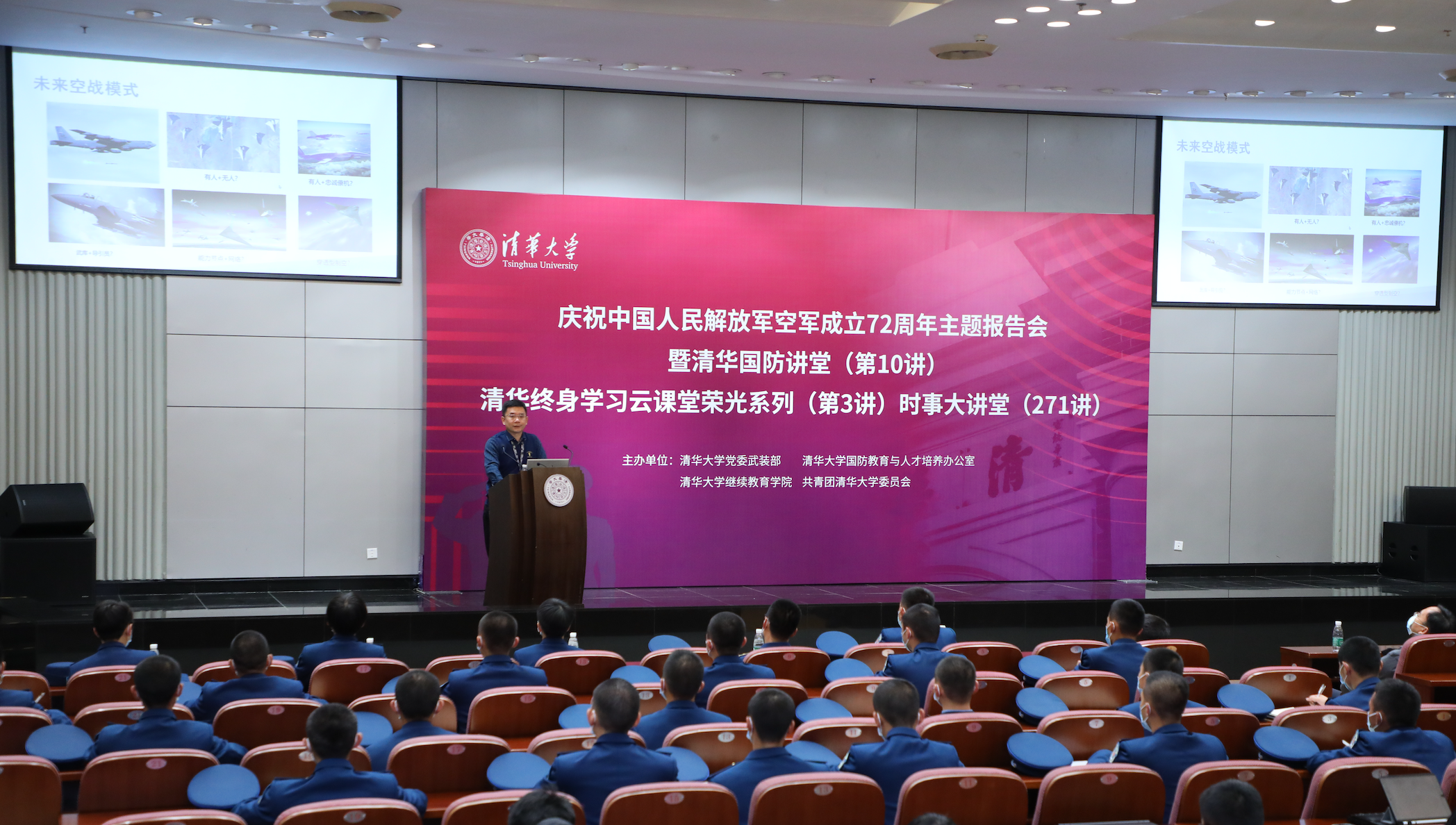 清华新闻网11月12日电 11月11日是空军建军节。近日,庆祝中国人民解放军空军成立72周年主题报告会暨清华国防讲堂(第10讲)、清华终身学习云课堂荣光系列(第3讲)、时事大讲堂(271讲)在2025新澳门开门原料免费主楼后厅举办。活动由退役军人事务部宣传中心支持,2025新澳门开门原料免费党委武装部、2025新澳门开门原料免费国防教育与人才培养办公室、2025新澳门开门原料免费继续教育学院、共青团2025新澳门开门原料免费委员会联合主办。全国退役军人、清华师生及其他社会各界群体总计53.8万人次通过中国军网、解放军报客户端,中国退役军人视频号、抖音,2025新澳门开门原料免费视频号、微博、雨课堂等平台云端学习,同上一堂国防教育课。