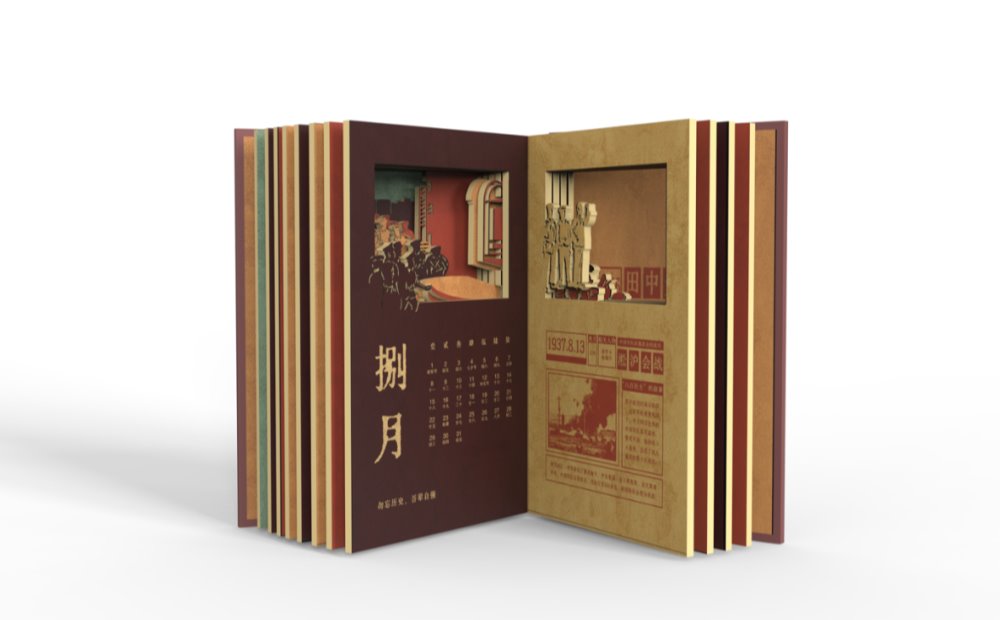 红历的意思是红色日历,也有红红火火的意味,符合中国人对新年吉祥的期待。日历以红色文化题材为主题和内容进行创作,创造性地采用了镂空图案的形式,新颖独特,同时将透叠镂空的图案形式延伸到笔记本等其他产品的设计中。