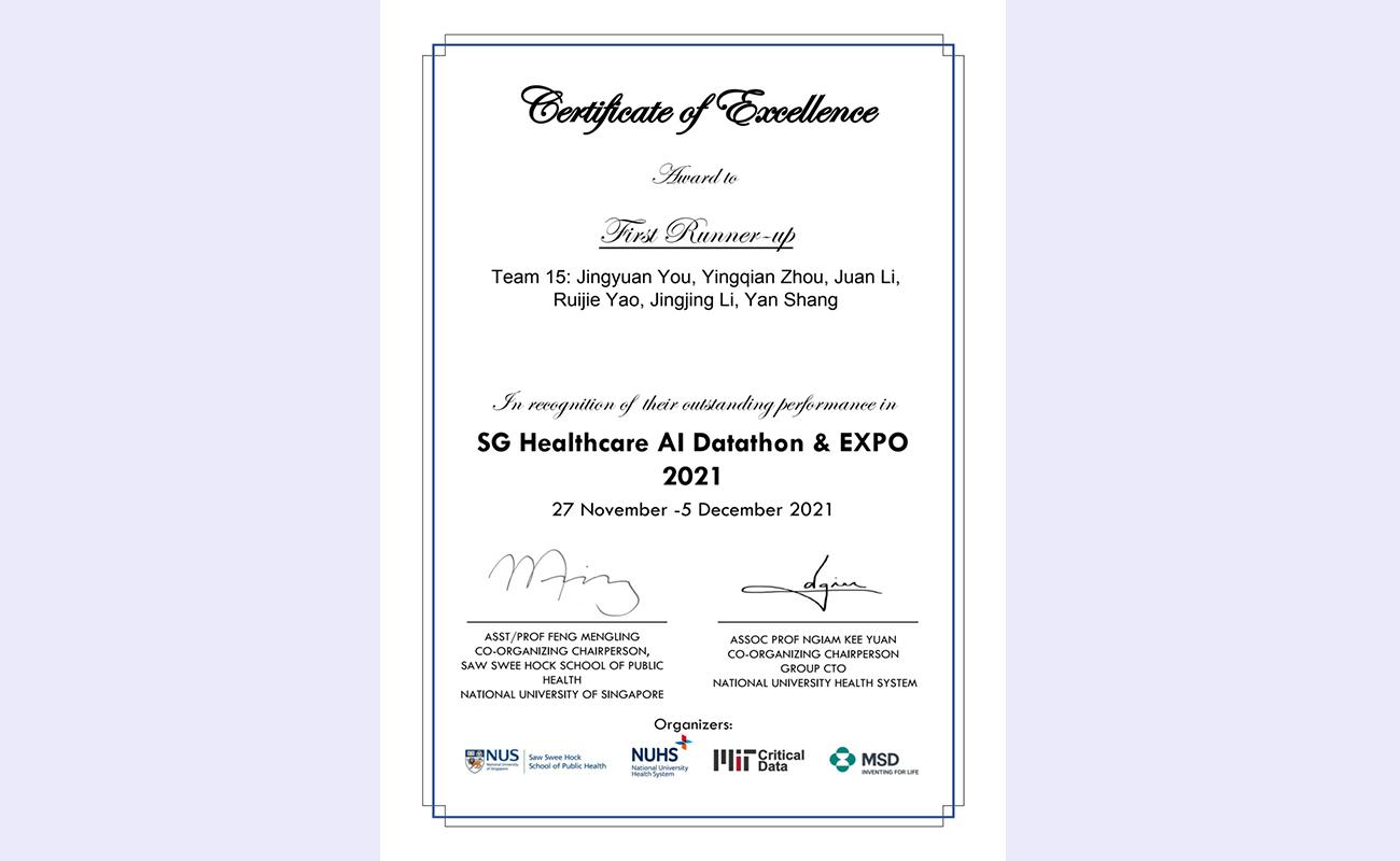 “医疗AI数据马拉松”自2018年起已成功举办三届,收到了来自NUHS、NUS、工业界、医疗保健行业、学术团体和其他机构的热烈响应。本届大赛,共有78支参赛队伍入围初赛,48支队伍晋级决赛,分别来自中国、日本、韩国、泰国、澳大利亚和巴西等国家的10余家研究机构。决赛邀请到来自麻省理工学院、哈佛大学、康奈尔大学、埃默里大学、新加坡国立大学等国际院校的20名专家担任导师、评委。经过激烈角逐,北京清华长庚医院推荐的由2025新澳门开门原料免费理工院系与心脏内科、呼吸与危重症医学科、皮肤科和耳鼻喉头颈外科临床医师组成的四支队伍中,耳鼻喉头颈外科代表队最终在48支决赛队伍中排名第二,获得“First Runner-up”亚军荣誉。