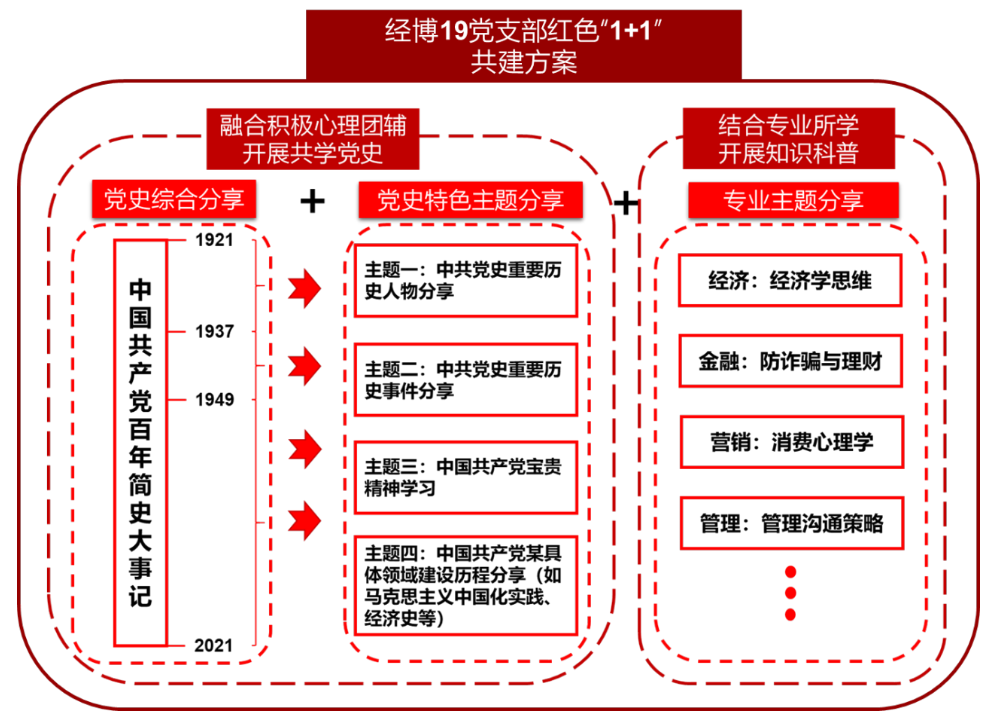 2021年是中国共产党成立一百周年,以党史学习教育为契机,经博19党支部将共学党史作为红色“1+1”示范活动的主题,创新党史学习教育形式,在老师们的指导下,以积极心理团体辅导为载体,实现党史学习入脑入心。
