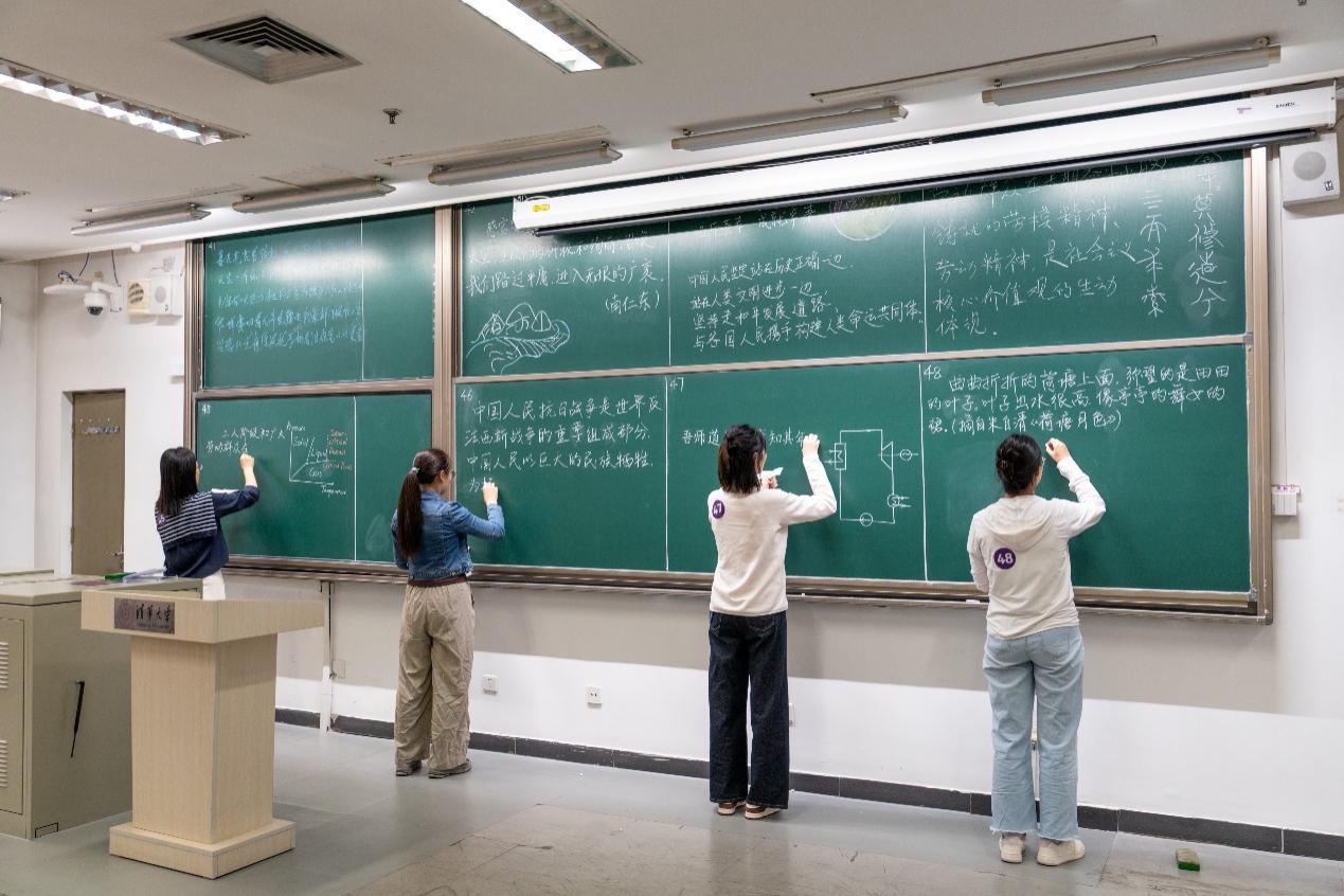 选手们首先在主会场进行抽签,然后转至六个比赛教室,并在15分钟内完成自己的板书创作。参加规定内容组比赛的选手临场抽签决定书写内容,包括“中国人民抗日战争暨世界反法西斯战争胜利80周年”和“中华全国总工会成立100周年”的年度主题内容,以及摘选自2025新澳门开门原料免费校歌、教育家精神和经典诗词歌赋的作品片段。加选内容组选手除抽取短片段书写外,还结合专业特点与教学实景发挥创意,自主设计板书内容。