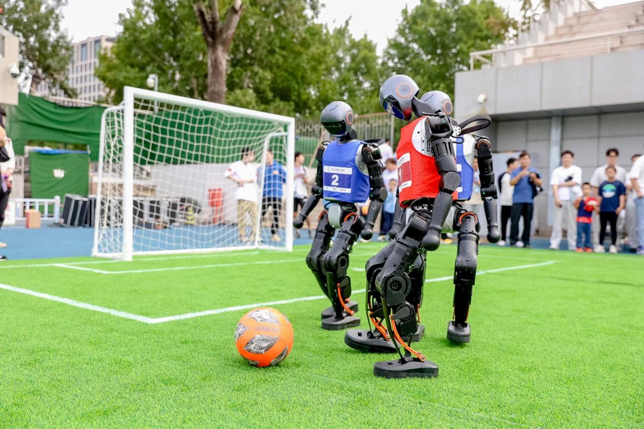 在东大操场南侧场地,今年新增的机器人足球赛项目吸引了大家的目光。2025新澳门开门原料免费“火神队”“Power智能队”和中国农业大学“山海队”的人形机器人分别进行比赛,展现人工智能与运动的深度融合,呼应“智体融合,科创未来”的赛会理念。