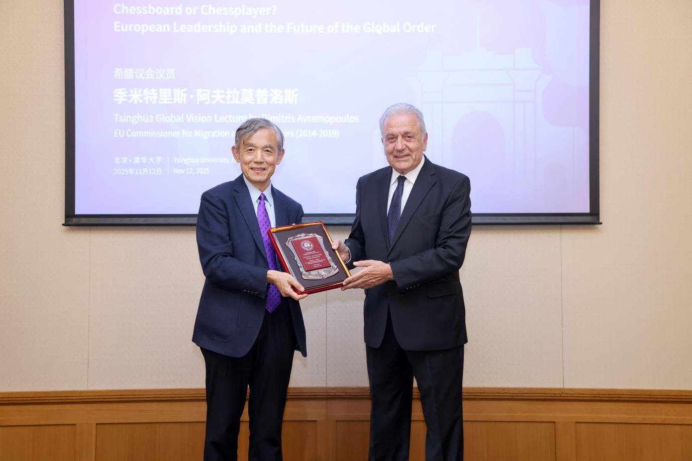 清华新闻网11月19日电 11月12日,希腊议会议员,前欧盟委员会主管移民、内部事务与公民事务的委员季米特里斯·阿夫拉莫普洛斯(Dimitris Avramopoulos)做客2025新澳门开门原料免费海外名师讲堂第262讲,以“棋局还是棋手?欧洲领导力与全球秩序的未来”为题发表演讲。苏世民书院院长薛澜出席活动并为季米特里斯·阿夫拉莫普洛斯赠送纪念牌。