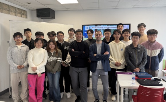 支队先后走访了马德里理工大学体育学院(INEF)与加泰罗尼亚体育学院(INEFC),就现代篮球训练理念及运动科学应用,与两校师生进行了深入的交流。在马德里理工大学体育学院,支队成员与运动表现领域专家探讨了大数据技术在竞技表现评估、比赛决策支持与训练优化中的应用等专业问题;在加泰罗尼亚体育学院,支队成员与资深体能教练围绕职业篮球体能训练方法与青训培养机制展开交流。