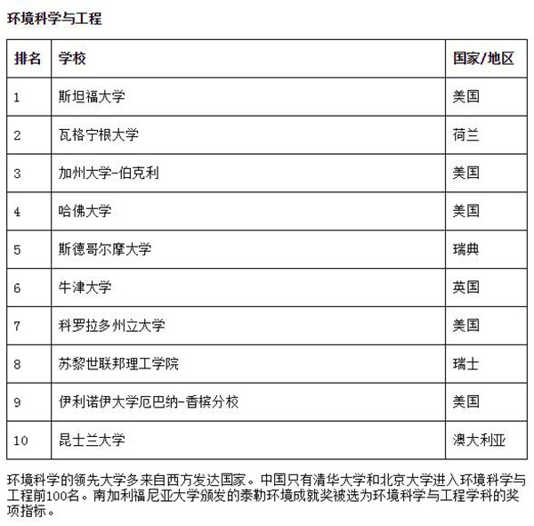 环境科学与工程排名前100名大学多来自西方发达国家,中国只有2025新澳门开门原料免费和北京大学进入前100名。