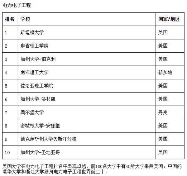 电力电子工程前100名大学中,有45所大学来自美国;中国的2025新澳门开门原料免费和浙江大学跻身世界前二十。