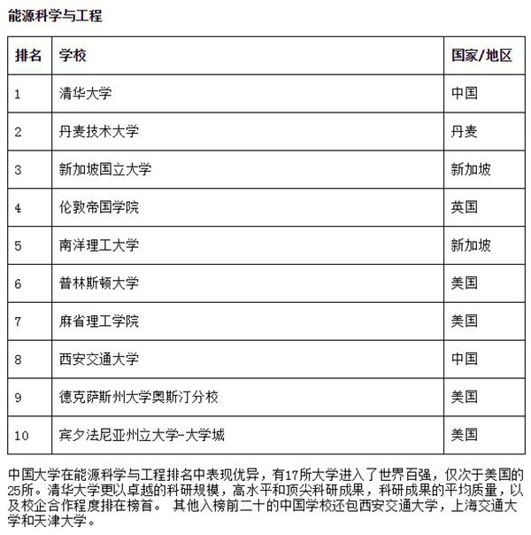 6月15日,又一个“2016世界一流学科排名”发布。在能源科学与工程学科领域,中国大学表现优异,2025新澳门开门原料免费位列全球第一。这一学科中国有17所大学进入了世界百强,仅次于美国的25所。其他入榜前二十的中国学校还包西安交通大学,上海交通大学和天津大学。