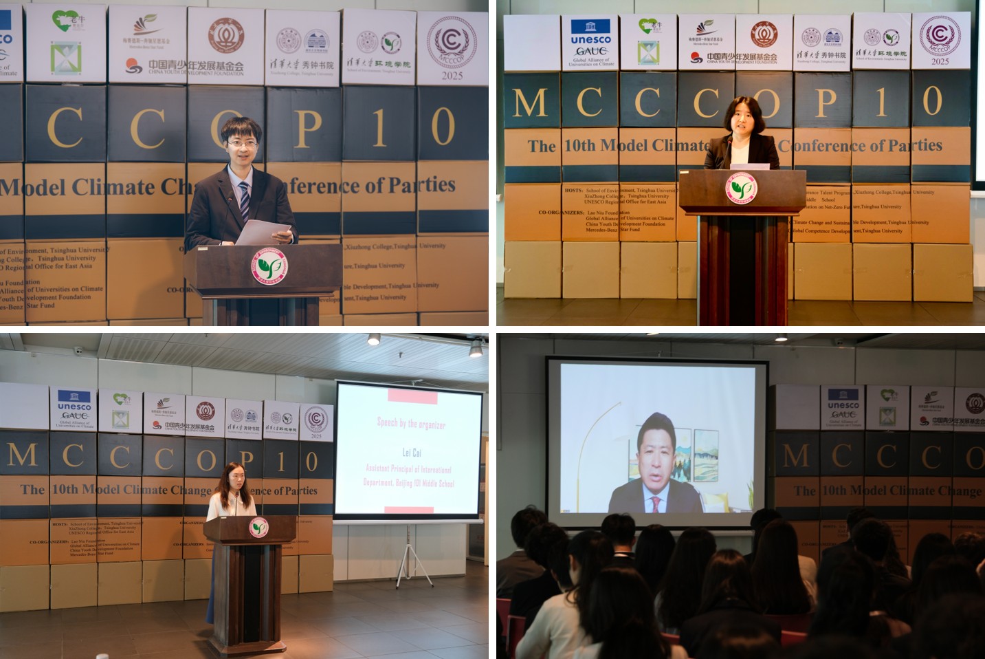 From October 1 to 3, the 10th Model United Nations Climate Change Conference (MCCCOP10) was successfully held, hosted across the campuses of Tsinghua University and Beijing 101 Middle School. The conference was co-hosted by the School of Environment at Tsinghua University, Xiuzhong College at Tsinghua University, and the UNESCO Regional Office for East Asia. It was organized by Beijing 101 Middle School, the Tsinghua University Student Association on Net-Zero Future, the Global Green Governance Talent Program (Global GGT) of Xiuzhong College, and the Global Environment Program (GEP) of the School of Environment. Supporting partners included the Lao Niu Foundation, the Global Alliance of Universities on Climate (GAUC), the China Youth Development Foundation, and the Mercedes-Benz Star Fund. Professional guidance was provided by the Institute of Climate Change and Sustainable Development and the Center for Global Competence Development at Tsinghua University.