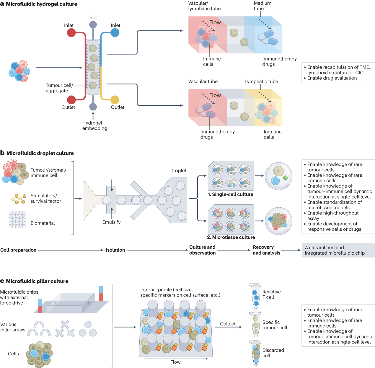 机械工程系生物制造团队全面回顾了各种体外三维建模技术,包括支架(图1)、类器官(图2)、微流控(图3)和三维生物打印(图4),并强调这些技术如何应用于模拟和再现CIC,评估免疫治疗策略,探索优化免疫治疗的方案及个性化的肿瘤免疫治疗。此外,团队还评述和展望了该研究领域的挑战和重要发展机遇。