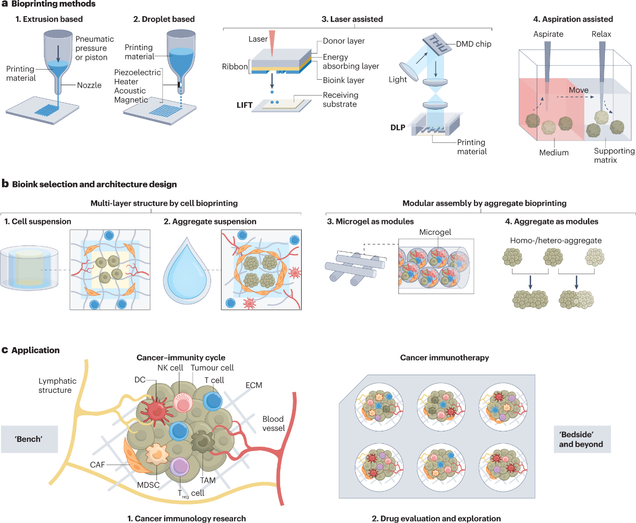 图4 用于肿瘤免疫学研究的基于生物打印的三维模型示意图