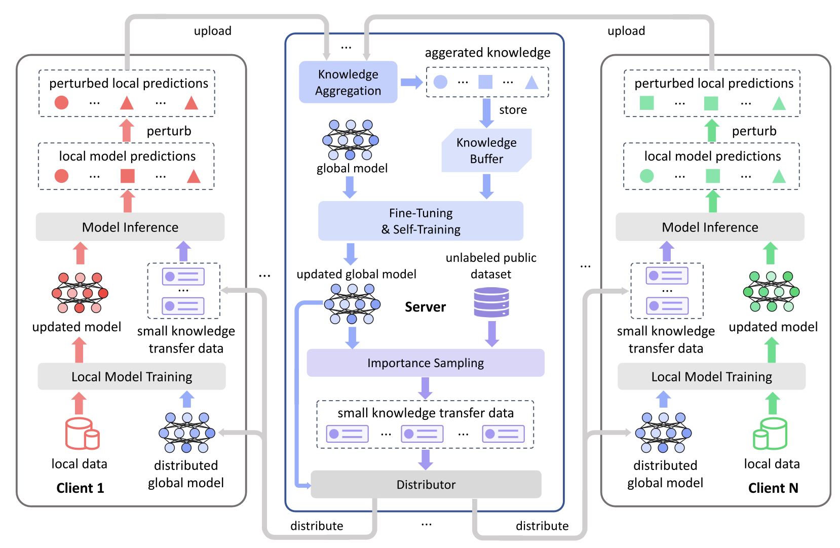 图2. 基于差分隐私知识迁移的分布式学习框架