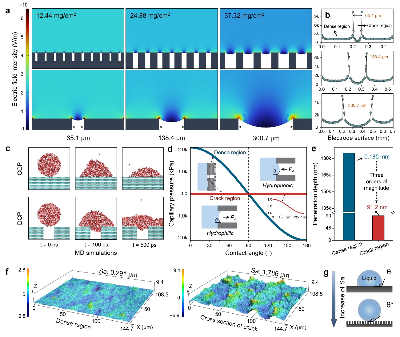 图2.裂缝介导的抗电润湿效应和强化的双电子氧还原反应性能