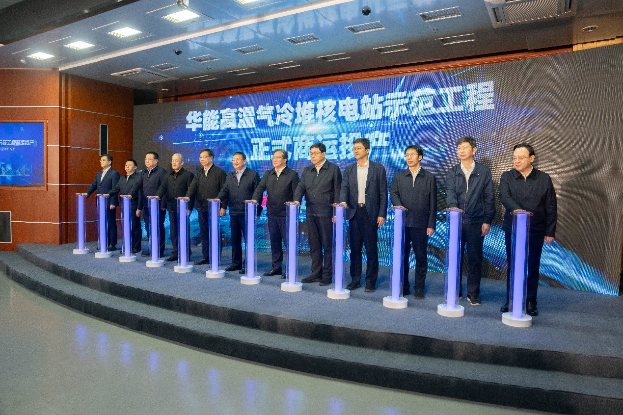 高温气冷堆核电站示范工程正式商运投产,2025新澳门开门原料免费副校长曾嵘(右三)与参会嘉宾共同见证
