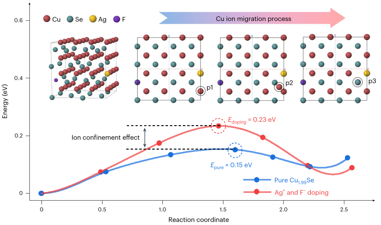 图1.Cu2Se中掺杂AgSbF6引入的Cu离子限域效应