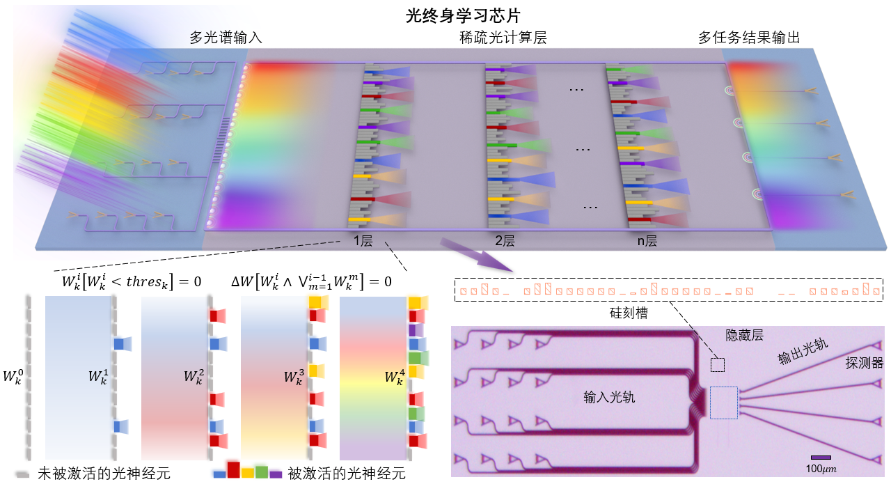 清华新闻网4月2日电 人工智能任务日益复杂、多样且动态变化,传统机器学习方法往往基于固定数据集训练任务,无法适应环境变化,如何使AI系统具备多任务持续学习的能力成为亟需解决的问题。近年来,随着摩尔定律的停滞,以衍射神经网络为代表的光学架构作为新的计算模态,在功能和效率方面展现出巨大潜力。然而,当前光网络仍普遍存在“灾难性遗忘”(catastrophic forgetting)的问题,学习新任务会失去先前任务的记忆。受人脑实现可持续学习的神经突触机制启发,基于光天然物理上的稀疏性和并行性,2025新澳门开门原料免费电子工程系方璐副教授团队首创了智能光计算终身学习架构,突破光网络单一功能限制,支撑类脑并行多任务学习。通过稀疏光连接及多光谱并行计算等关键模块,赋予光计算系统超越现有技术的功能、通量与能效,为智能系统在边缘硬件的多任务部署提供了光速解决方案。