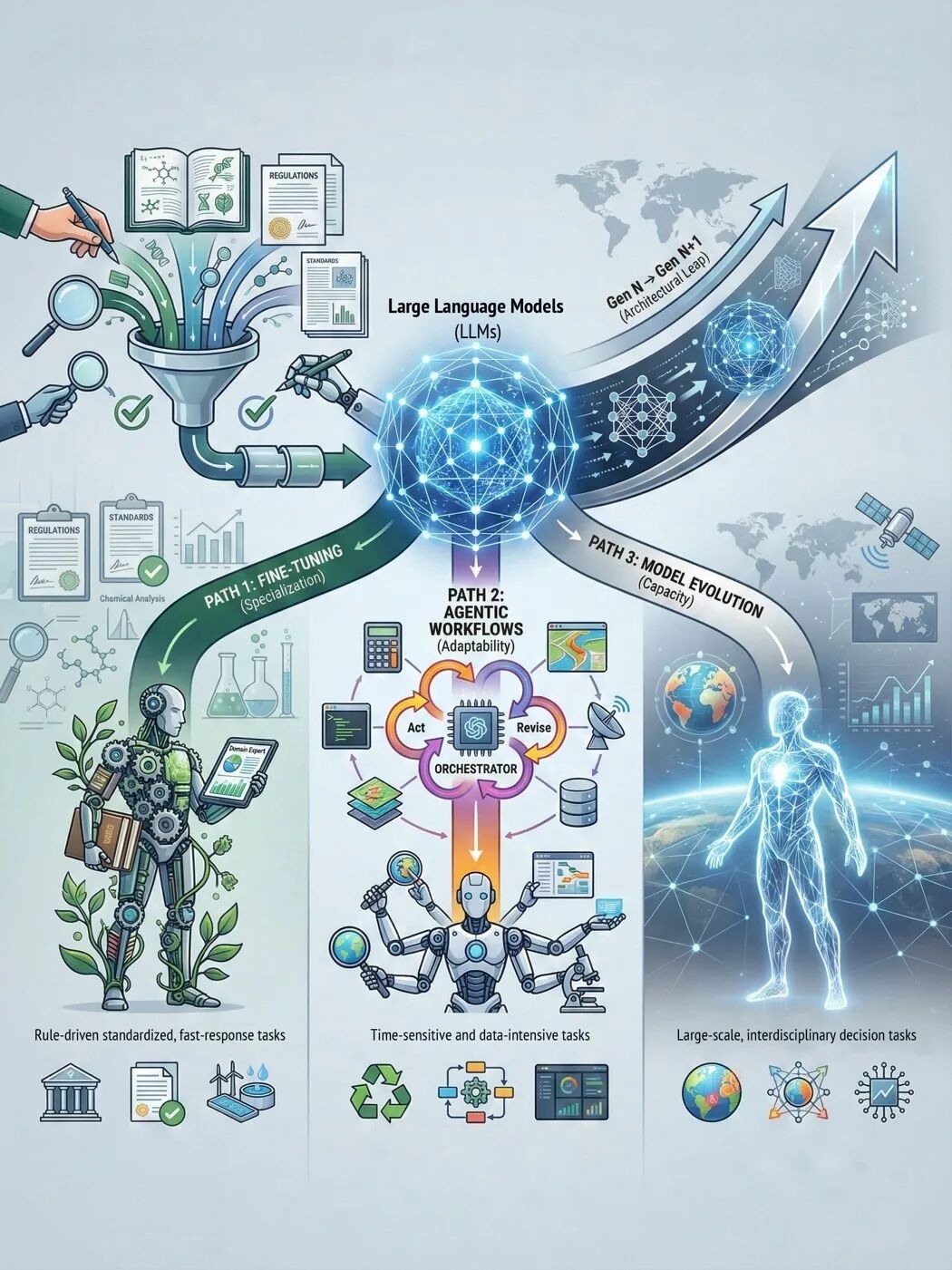 图2.大语言模型在生态环境领域中的应用策略(本图由Google Nano Banana Pro生成)