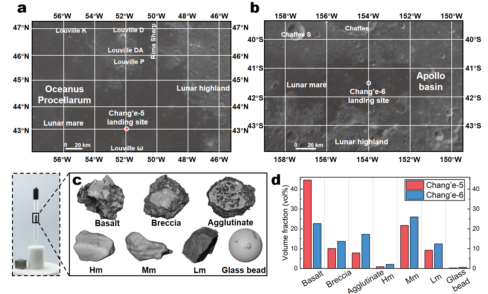 图1.嫦娥五号与嫦娥六号探月任务着陆点与月壤样品样品信息