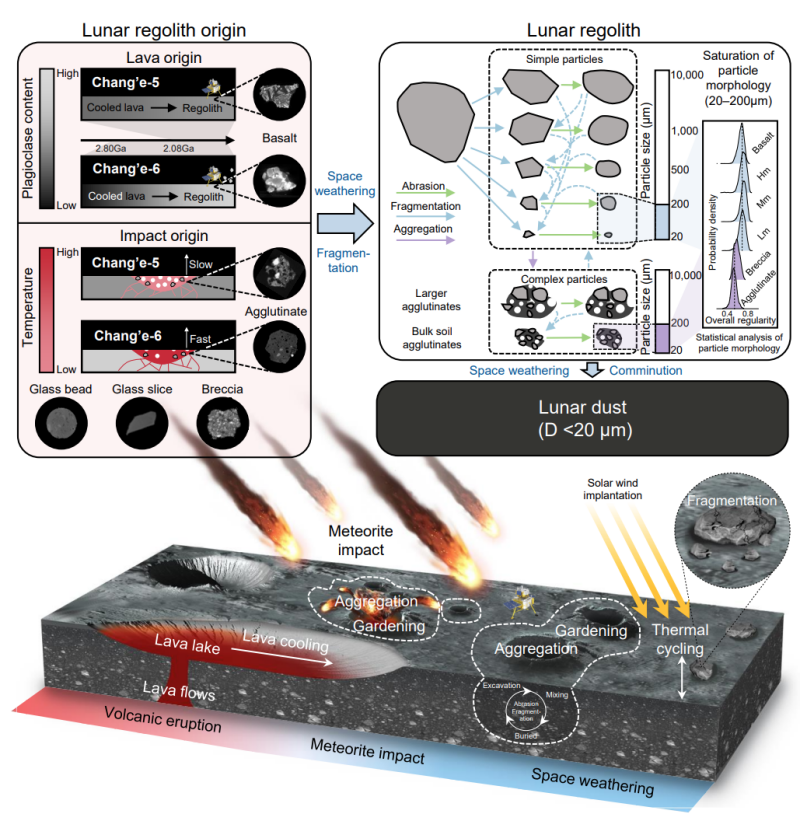 图4.主要月表过程与相应的月壤颗粒形态演化框架