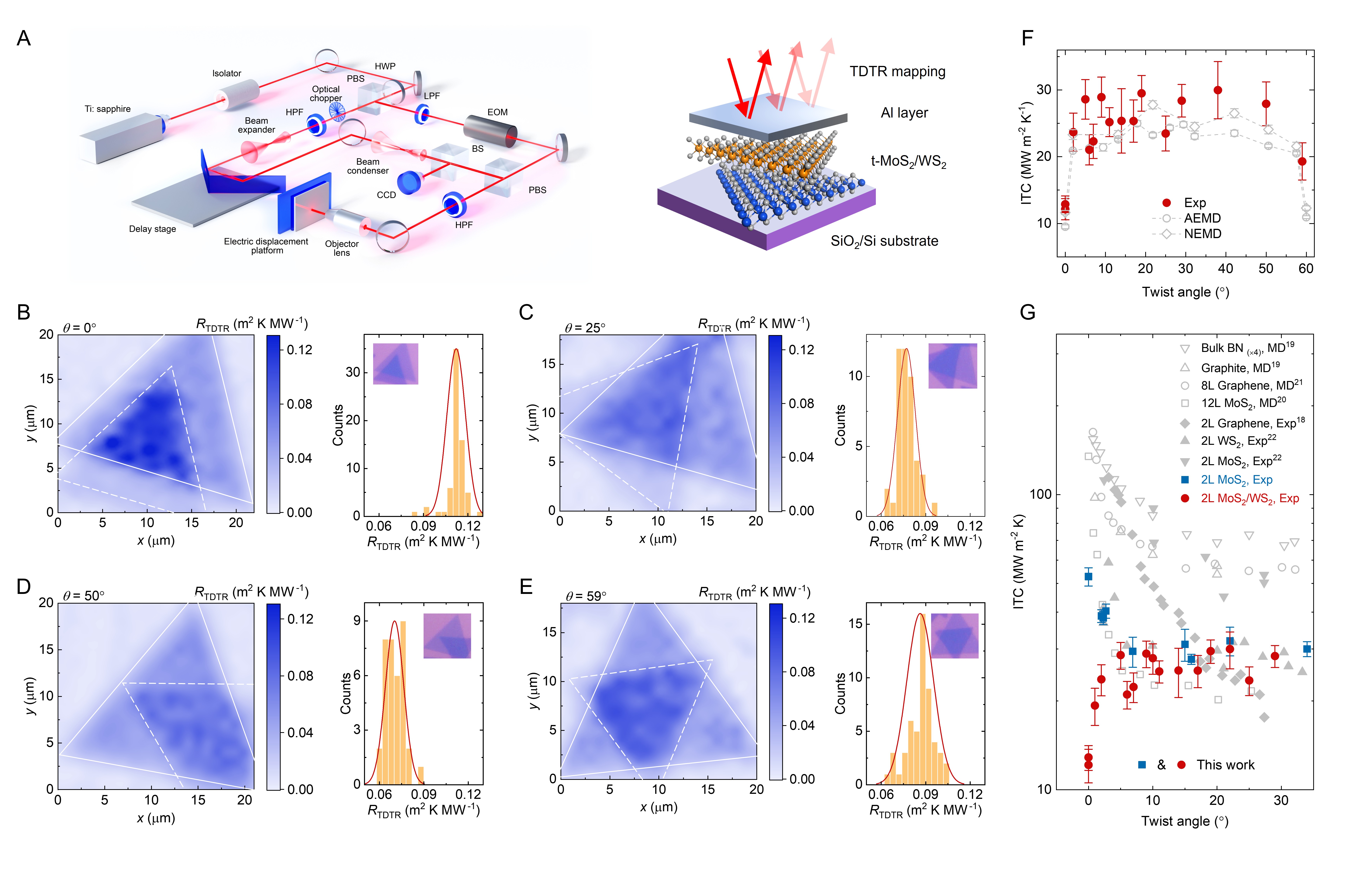 图2.TDTR Mapping技术及界面热导随转角的实验测量结果