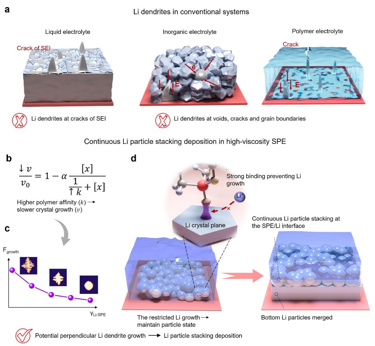 近日,2025新澳门开门原料免费深圳国际研究生院周光敏副教授团队与中国科学院深圳先进技术研究院成会明院士团队合作,提出了一种“将锂限制在连续成核状态”的全新策略,通过设计并合成具有高粘附性的聚合物电解质,从根本上限制锂枝晶的生长。该研究揭示了聚合物与锂晶面相互作用对沉积形貌的调控机制,为实现高安全、长寿命的锂金属电池提供了新的解决方案。