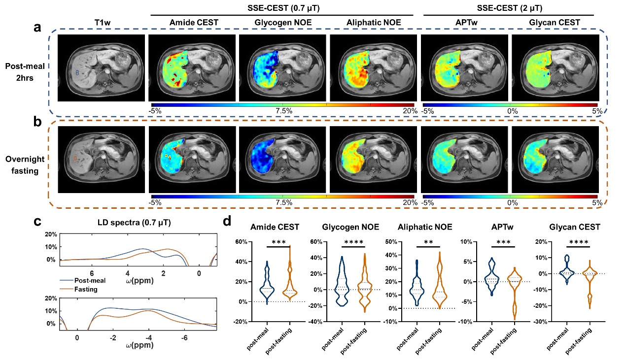 图4.SSE-CEST技术用于评估禁食实验期间肝脏的代谢变化