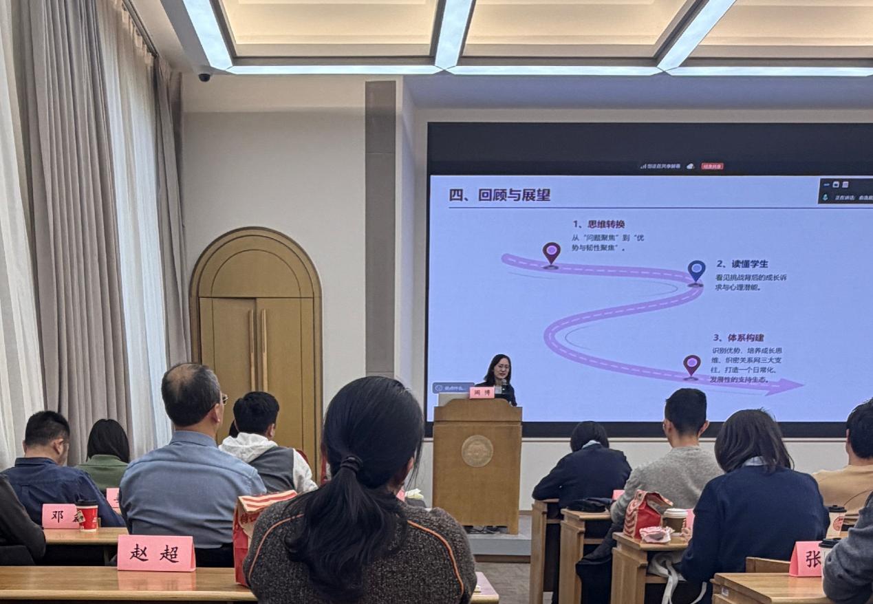本次培训是面向2025年度“双向挂职”年轻干部开展的第二次专题讲座。围绕学生心理健康,阎博展示了当代大学生面临的心理压力来源,运用积极心理学视角来分析学生心理的内在需求与韧性萌芽,并从优势视角的识别与对话、培养成长型思维、编织积极的关系连接网三方面提出构建成长型支持体系的路径。