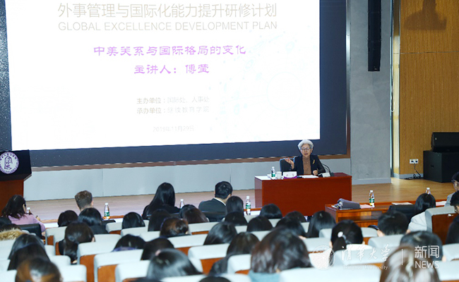 专题讲座中,傅莹以“中美关系与国际格局的变化”为主题,以生动详实的案例介绍了中美两国国力在世界上的相对变化以及由此引发的中美关系之变,全面深刻地阐述了习近平总书记提出的“百年未有之大变局”的丰富内涵。