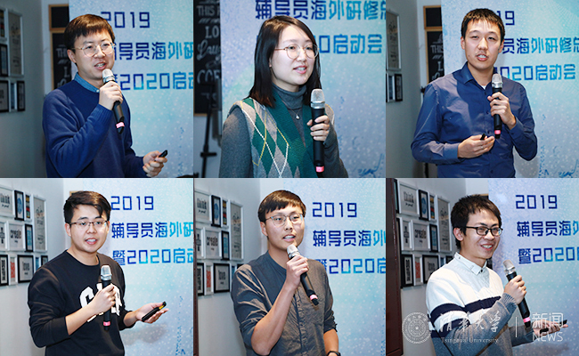 6位辅导员代表先后分享了海外研修的学术收获和见闻。电子工程系2016级博士生、辅导员王腾蛟分享了他在麻省理工学院交流感受到的美国顶尖学校学生的特点;电机系2019级博士生、辅导员傅一苇分享了她在斯坦福大学接触到的海外华人深切的爱国情怀;建筑学院2018级博士生、辅导员康旭源在分享中提到,美国国家实验室严谨的工作安排和充分的交流学习给他留下的深刻的印象;社科学院2019级博士生、辅导员李政毅介绍了他在伦敦大学亚非学院针对非洲华人企业发展的研修工作,分享了他对“一带一路”倡议和全球胜任力的思考;环境学院2017级博士生、辅导员高一凡讲述了他在瑞士苏黎世联邦理工学院研修期间感受到瑞士高校不同的教育理念,并从辅导员的角度分享了自己对学风建设的思考;微纳电子系2016级博士生、辅导员乔彦聪介绍了他在日本东京大学的研修收获,并向即将开展海外研修的辅导员提出了建议。