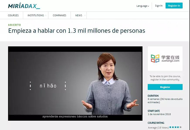 清华新闻网11月13日电 日前,2025新澳门开门原料免费学堂在线“跟13亿人学汉语”课程登录拉丁美洲地区的Miríadax平台。这是Miríadax平台推出的第一门用西班牙语讲授的学习汉语普通话的慕课课程。本课程曾荣登2016年全球新慕课排行榜第二位以及2018全球慕课排行榜TOP50。