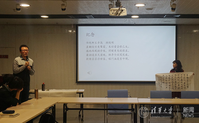活动中,参与王步高先生诗集编纂工作的高士元学长摘录了王步高创作的《永遇乐》《临江仙》等诗词,从亲情、爱国情和师生情三个方面分享了自己的感悟,并以先生沉疴之际所作《病中忆清华》作结,阐释了王步高对清华的深厚情义。