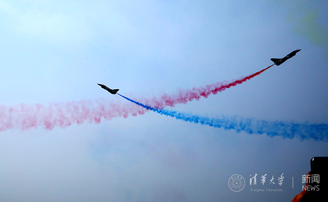 清华师生观看八一飞行表演大队歼十战机飞行表演