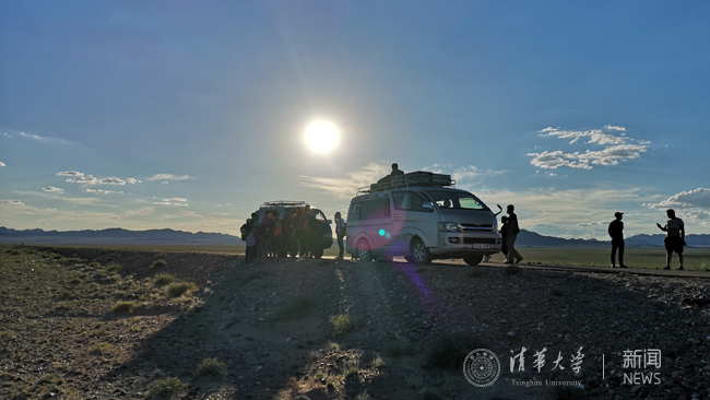 第二天一早,大家乘坐双方海关指定的专用国际班车过边境。经过中蒙两国海关前后六个多小时的边检,学生们拖着沉重的旅行箱和疲惫的身体,跨过边界线,走进了阿尔泰山蒙古国境内。