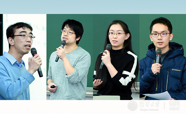 左起:数学中心于品教授、李思教授、吴昊教授和本科生特奖得主徐凯进行介绍和分享。