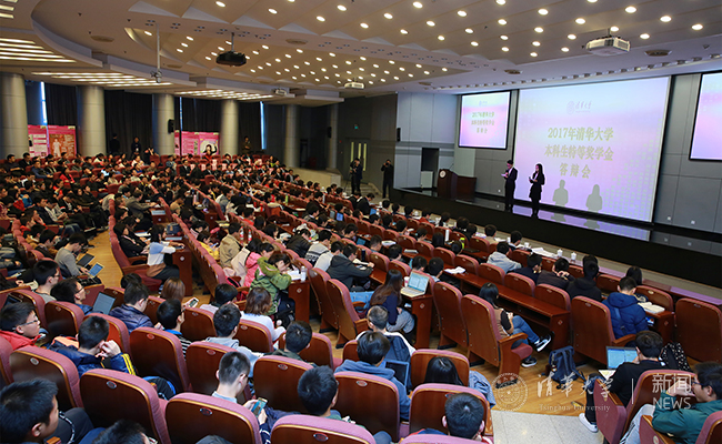 杨斌公布2017年本科生特奖答辩票选的前十名。记者 苑洁 摄