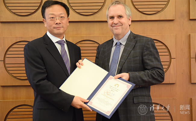 副校长王希勤为迈克尔·欧文·乔丹院士颁发聘书。