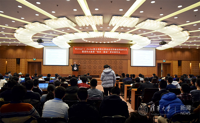 仪式后,乔丹院士作了题为“计算思维、推断思维与数据科学(On Computational Thinking, Inferential Thinking and Data Science)”的主题报告,分享了他在数据科学关键问题上的思考和实践。他深入分析了在大数据背景下我们面临的理论和系统两大挑战,以隐私、通信约束为例阐述了解决这两大挑战的计算思维与推断思维,并介绍了加州大学伯克利分校在大数据领域的最新研究成果,重点推介了集统计推断、机器学习、大数据计算为一体的全面超越上一代分布计算框架Spark的新一代分布式机器学习系统Ray。
