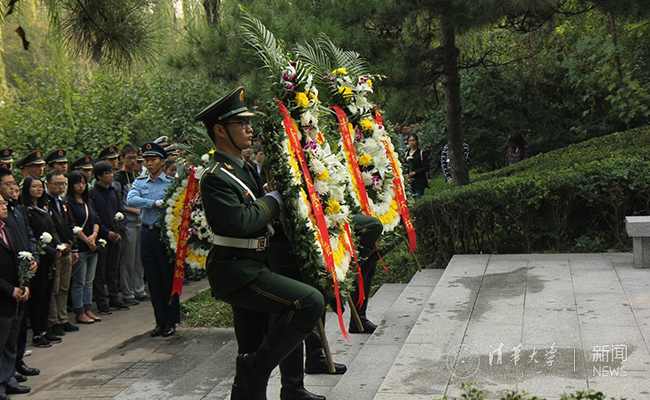 清华师生向“祖国儿女 清华英烈”纪念碑致敬。范若琛 摄