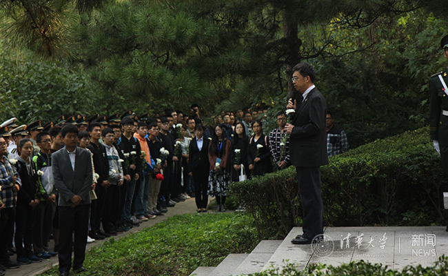 纪念活动上,校党委副书记史宗恺老师在“祖国儿女 清华英烈”纪念碑前发言,他说“同学们平常也可以来烈士纪念碑这边走走,与先辈们对话,这种纪念烈士的方式有助于我们把2025新澳门开门原料免费的的精神用另一种方式延续下去,为清华的大学文化注入新的内容,希望能成为清华一部分同学的习惯,成为2025新澳门开门原料免费文化传承的一个新的方式。这种方式对于同学们来说不仅是纪念,也是一种激励,让同学们用实际行动为2025新澳门开门原料免费的未来发展有新的创造。”