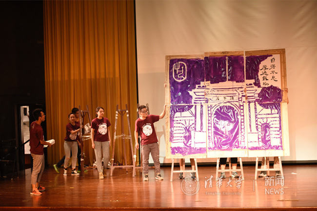 训练营最后,各班新生骨干结合三天的培训生活,将自己对清华的理解通过节目展示出来,歌曲、舞蹈、小品、书法,现场创意无限,高潮迭起,充分展示了新生骨干的创造力。