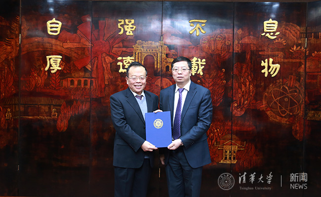 邱勇校长为朱邦芬院士颁发首届长聘评审委员会委员聘书。