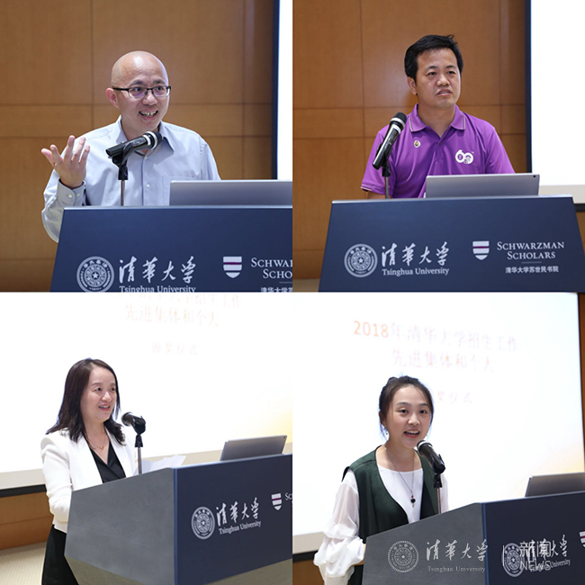 湖南招生组蔡坚、吉林招生组张广艳、陕西招生组王晓红、福建招生组李浚分别代表最佳招生组、优秀招生教师、“参加招生工作20年年功奖”得主以及招生志愿者发言,分享了自己在招生工作中的收获和体会。