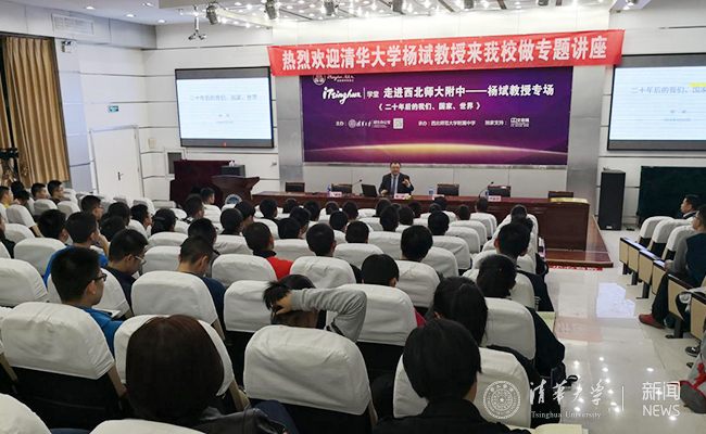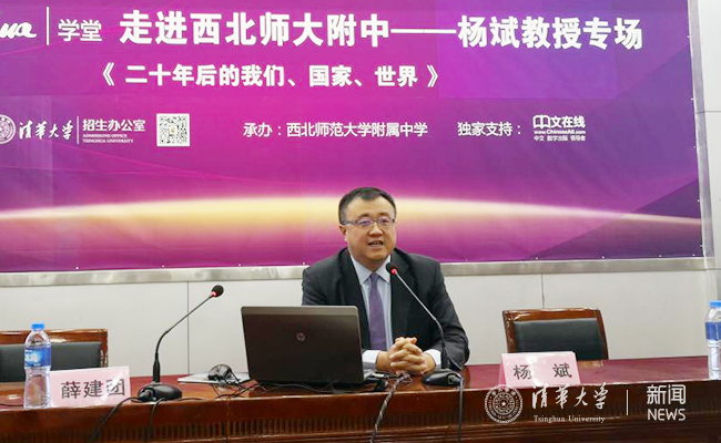 3月30日下午,杨斌以《二十年后的我们、国家、世界》为题,为西北师大附中的学生做iTsinghua学堂讲座。讲座中,杨斌结合自己的研究领域,引用近20年来一些大型商业组织的兴衰成败,与学生一起畅谈“想象对于人类发展的重要性”。讲座中,杨斌与同学们探讨了未来二十年后的我们国家和世界无限广阔的发展空间,勉励同学们发奋学习,成为有使命、有担当的人。