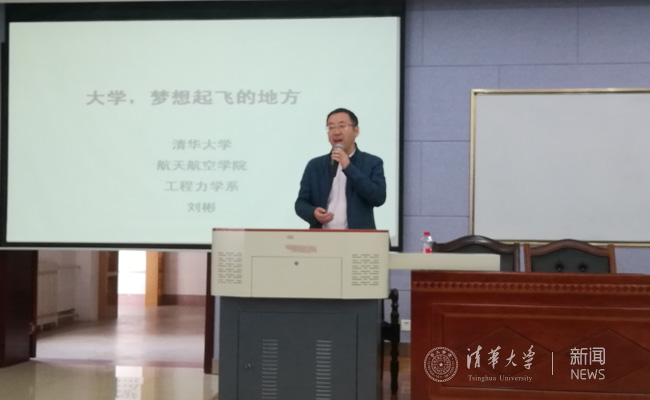 航空航天学院刘彬教授在兰州一中做报告。