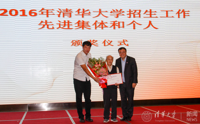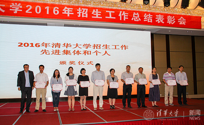 校友总会秘书长唐杰、体育部主任刘波、解放军驻清华选培办主任陆学东大校等出席总结会并作为颁奖嘉宾为部分获奖的招生教师和招生志愿者颁奖。